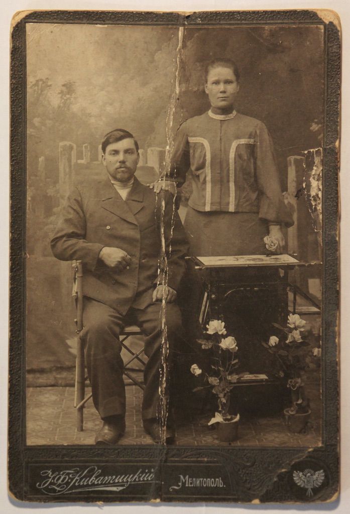 1920?, Яков Никитович Бобров с женой Феодосией Антоновной Колосковой (Бобровой)