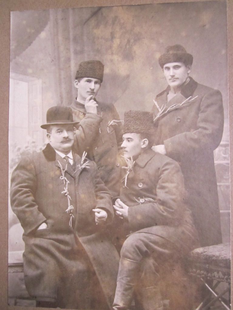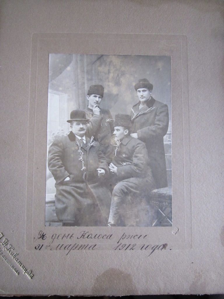 1912, ???, Иван Петрович Струков, стоят: Иосиф Иосифович Калмыков и Дементий ? Калмыков