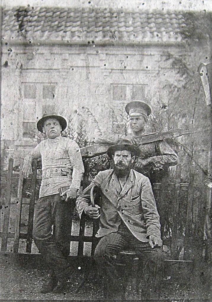 1913, Николай Трофимович Харсекин, Андрей Тимофеевич Сергеев и Пётр Андреевич Сергеев. Н-Васильевка (лето)
