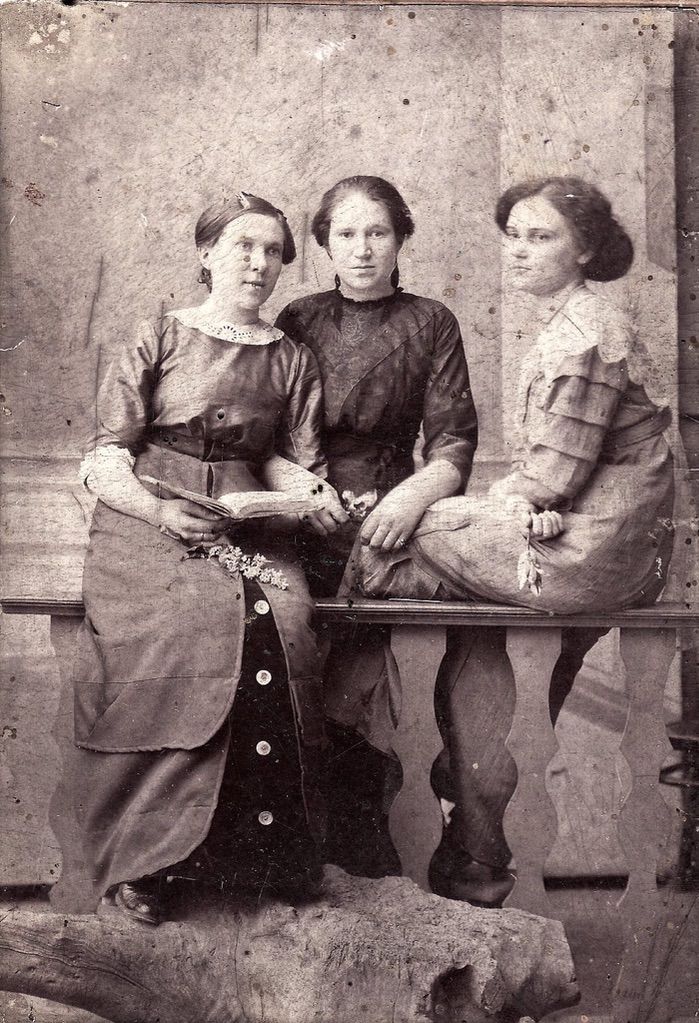 1910, Полина Иосифовна Калмыкова (Калмыкова), Мария Иосифовна Калмыкова (Рудамёткина, Сергеева) и ?Анна Петровна Струкова (Иванова-Клышникова)…