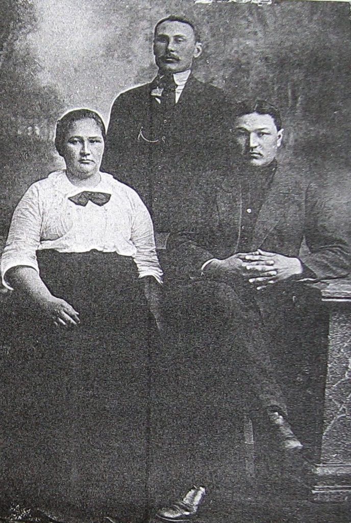 191?, Евдокия Павловна Рудамёткина (Калмыкова) (старшая сестра В. П. Рудамёткина), стоит ее муж — Калмыков и Василий Павлович Рудамёткин
