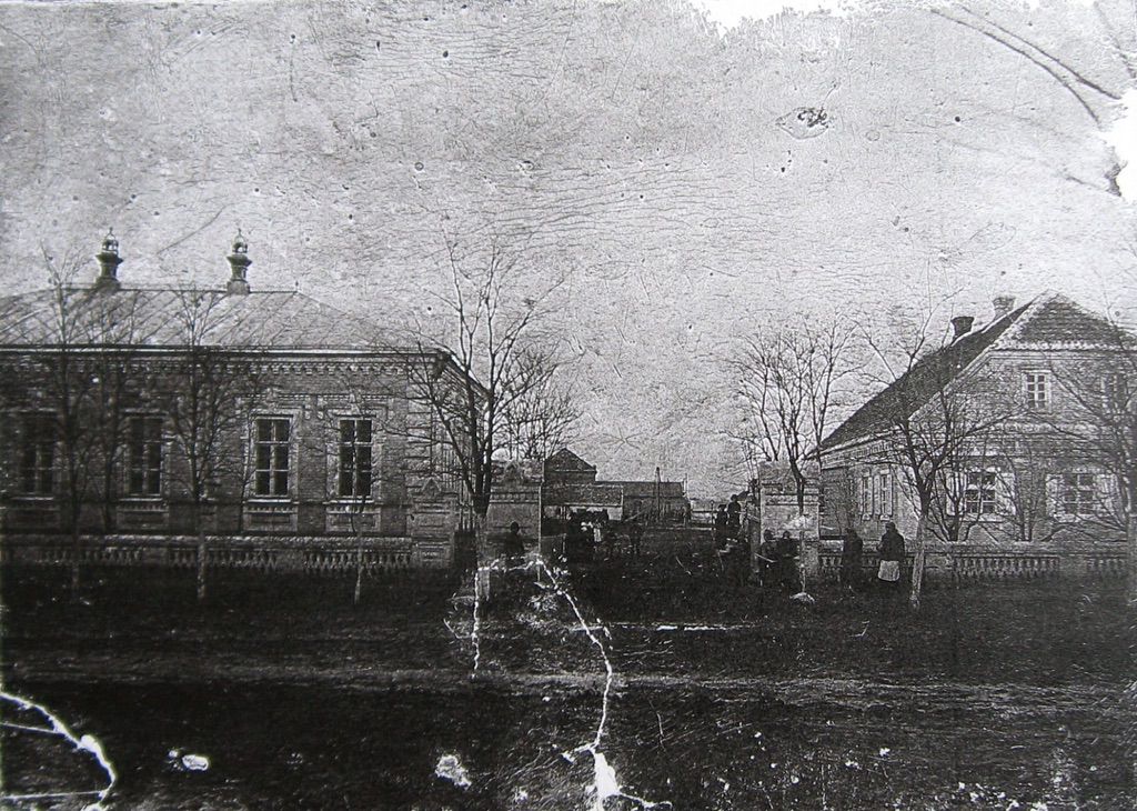1913?, Здание Владимирского собрания и дом Иосифа Иосифовича Калмыкова, вдали виднеется мельница Калмыковых.