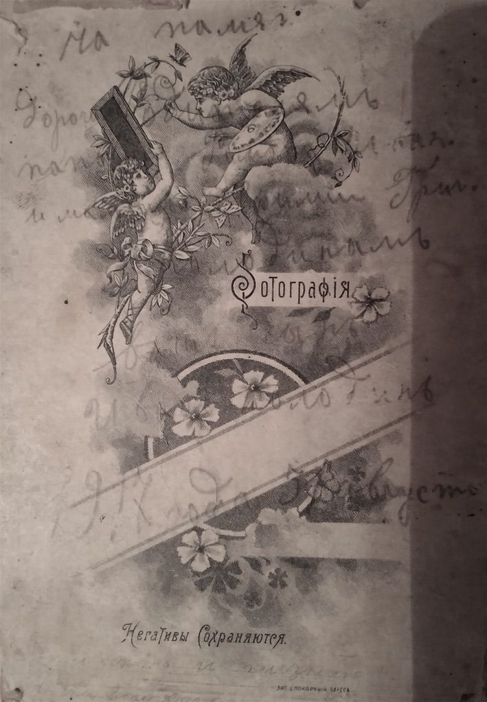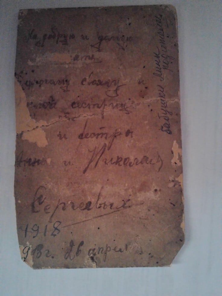 1918, 26 апреля. Николай Николаевич Сергеев с женой Анной Федотовной Черемисиной (Сергеевой). «На добрую и долгую / память / Дорогому свояку и / (Ми)лой сестрице / ............... / и сестры / Анны и Николая / Сергеевых / 1918г. 26 ап…