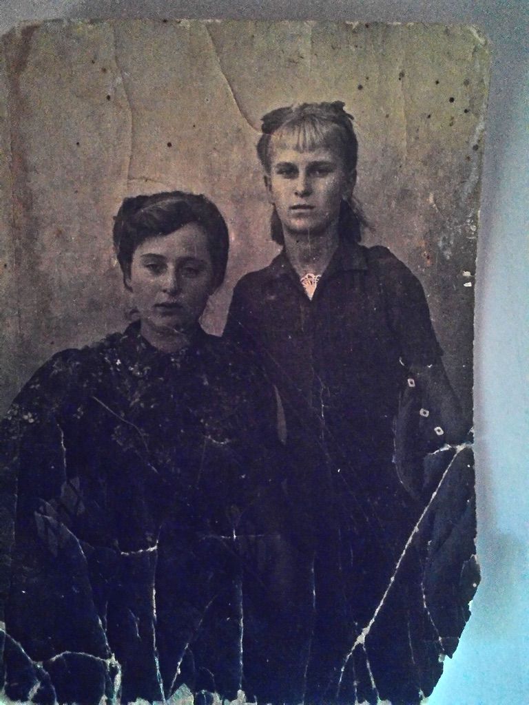 1945, Надежда Федотовна и Анна Федотовна Закаличные. Дочери Акулины Николаевны Сергеевой и Федота Сергеевича Закаличного.