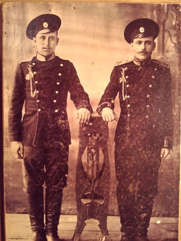 1916, 15 января. Колодин Иван Романович (справа).с. Урожайное Ставропольской губернии.