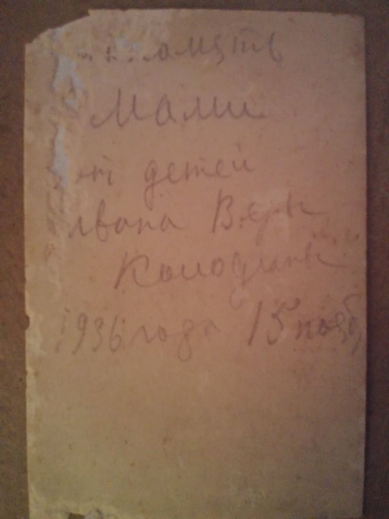 1936, 15 ноября. Иван Романович и Вера Романовна Колодины. «На память / мами / от детей / Ивана Веры / Колодины / 1936 года 15 ноября»