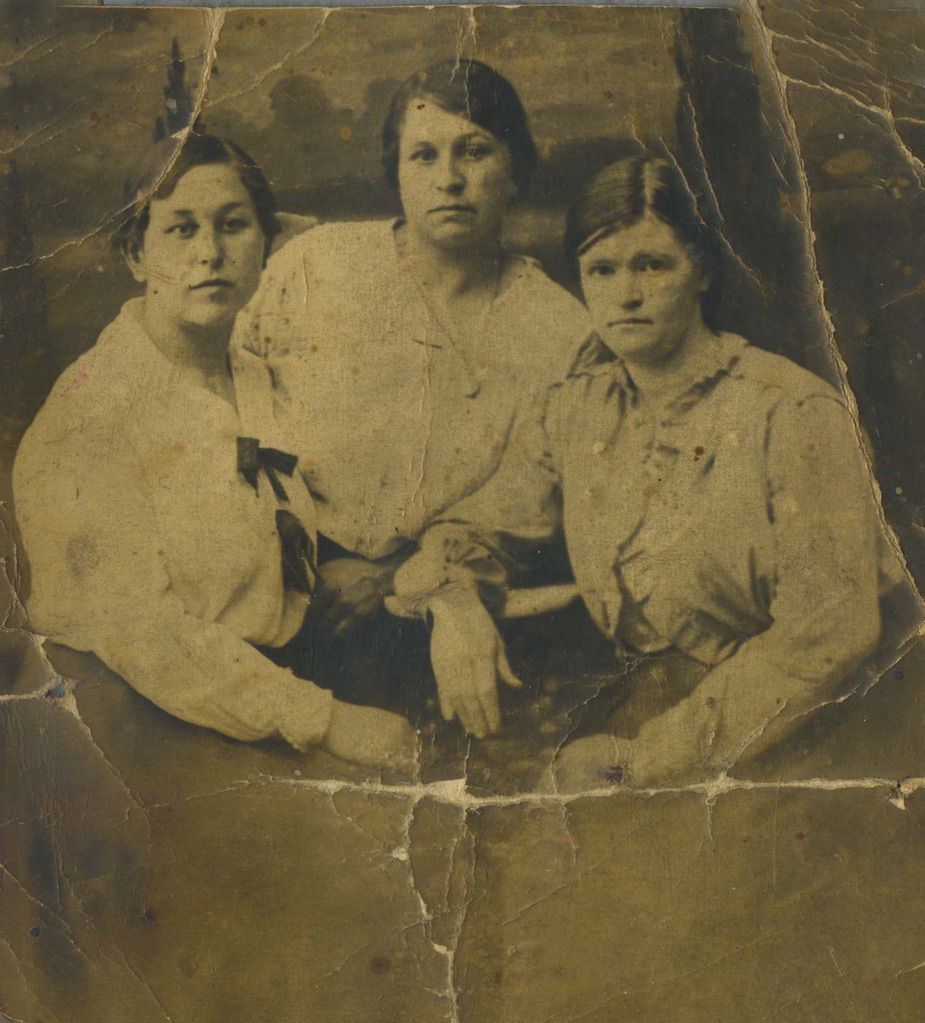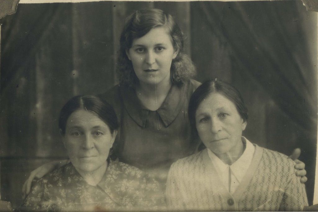 1944, Феодосия Петровна Смагина (Струкова), Елена Михайловна Струкова (Юденкова) и Татьяна Петровна Смагина (Мазаева) [Мелитополь]