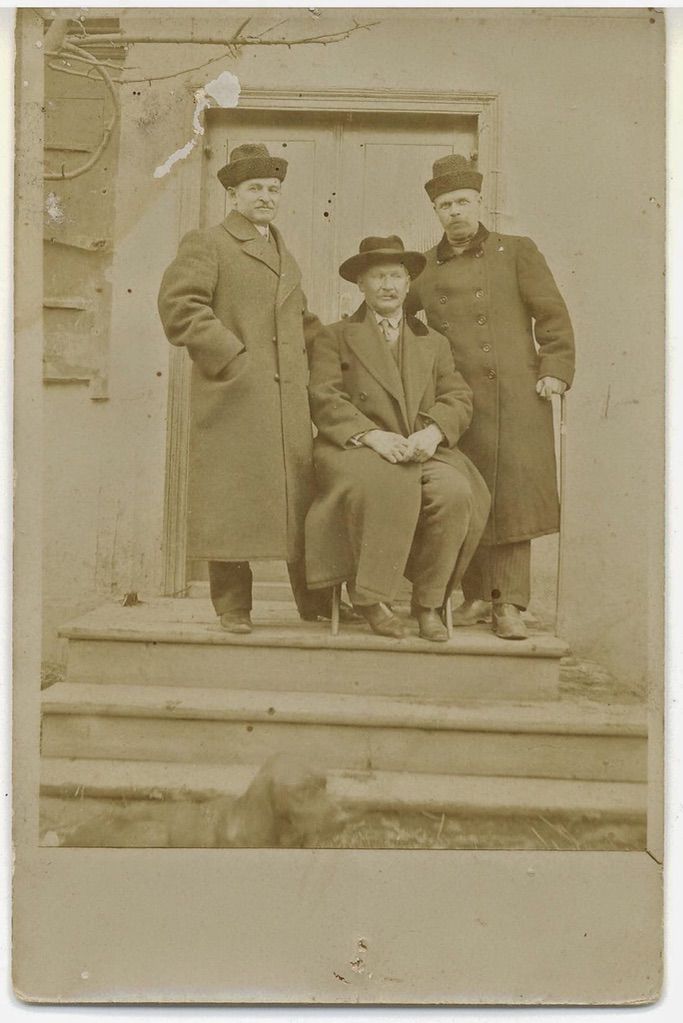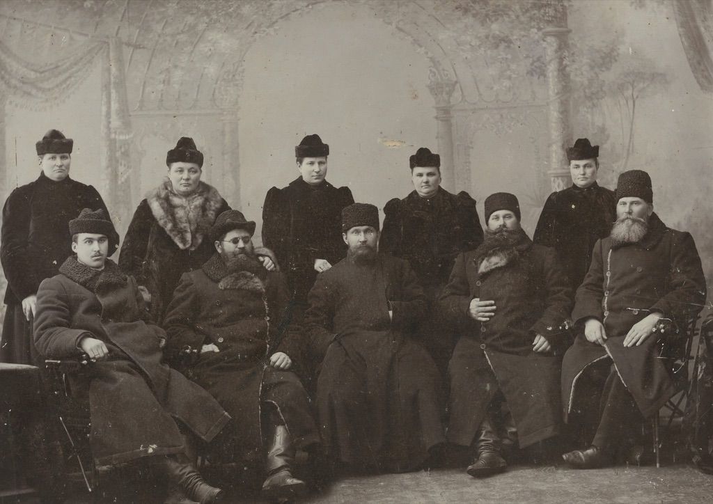 191?, Сидят слева направо: зять Якова Емельяновича Калмыкова — Мещяриков (владел в Пятигорске магазинами), Яков Емельянович Калмыков, Иосиф Иосифович Калмыков (пресвитер молоканской общины Ново-Васильевки и зять Емельяна Васильевича Калмыков…