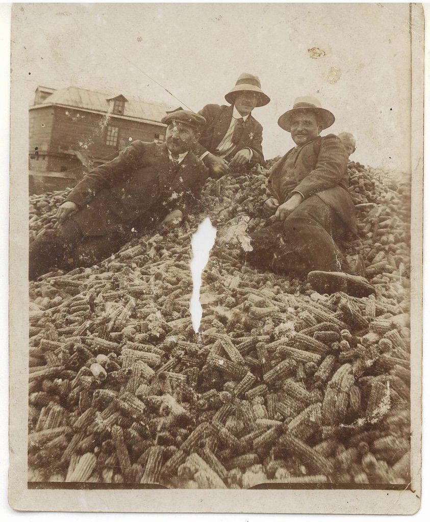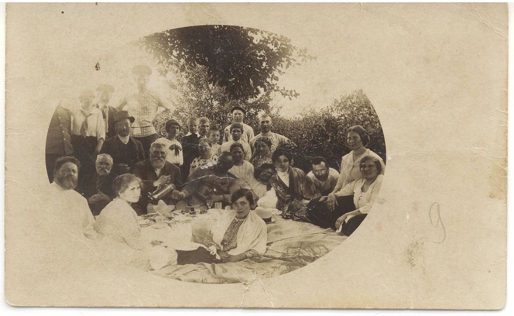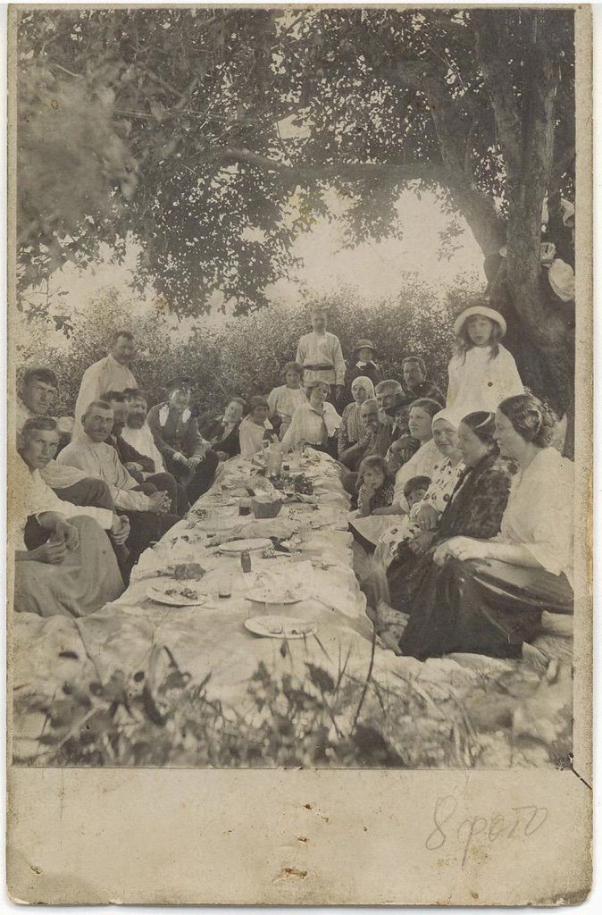 191?, Справа 4-ая Анна Алексеевна Сергеева (Суркова), рядом в шляпе её муж Михаил Михайлович Сурков, рядом с ним Василий Емельянович Калмыков…