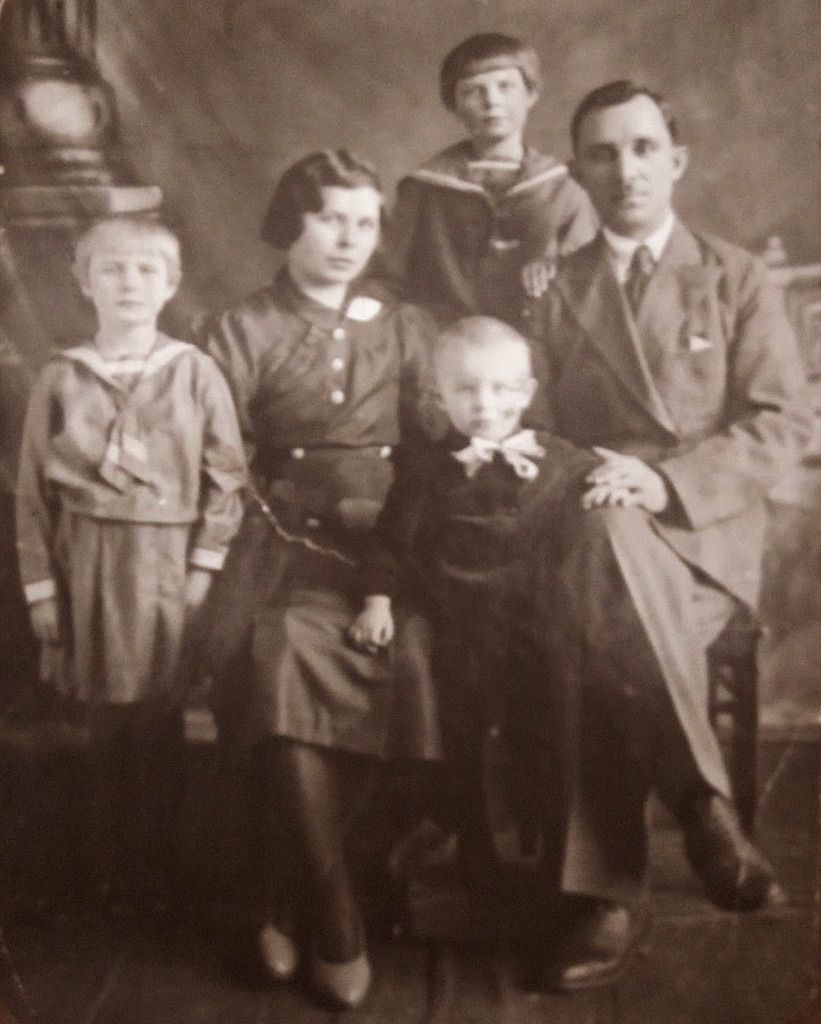 1930?, Петр Алексеевич Колосков (сын Алексея Осиповича Колоскова), его жена Анна Васильевна Левашова, дети – Мария Петровна, Геннадий Петрович, Анатолий Петрович (стоит за родителями)…
