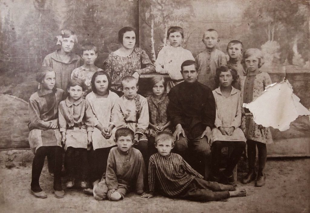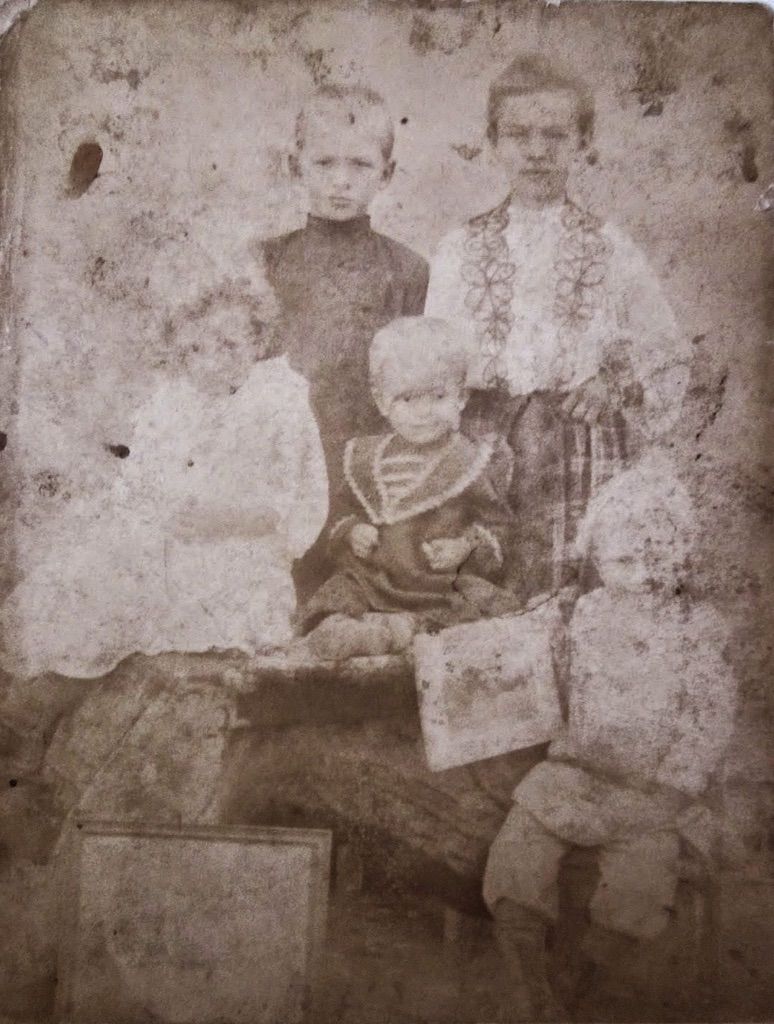192?, Дети Василия Струкова. Сидят — Надя, ? , Николай. Стоят — Василий и Полина.