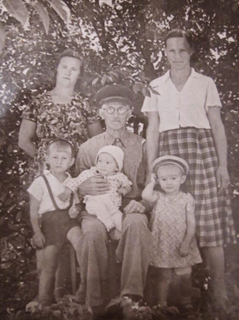 196?, Вл. Степанович Подковыров с дочерьми — Надеждой и Ольгой и внуками Сергеем, Людмилой и Полиной.