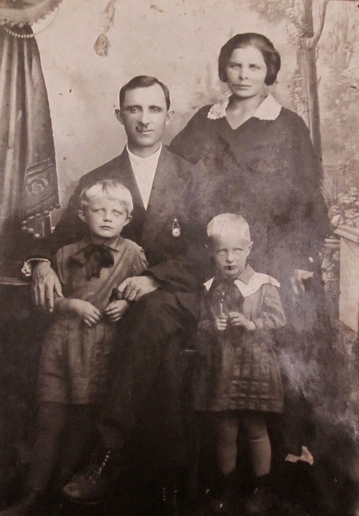 1936, Иван Алексеевич Колосков с женой Ольгой Тимофеевной Левашовой и детьми Раисой и Валентиной