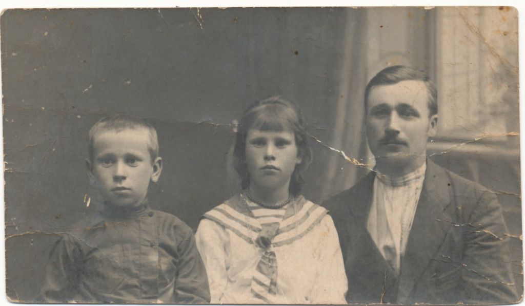 1920?, Василий Степанович Попов с детьми Верой и Михаилом