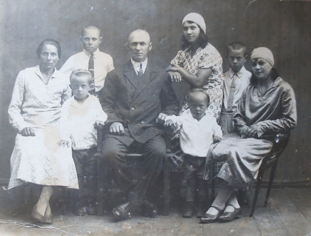 193?, Митрофан Иванович Попов и Анастасия Семеновна Струкова (Попова) с детьми Анастасией, Евдокией, Иваном, Василием, Семеном, Михаилом