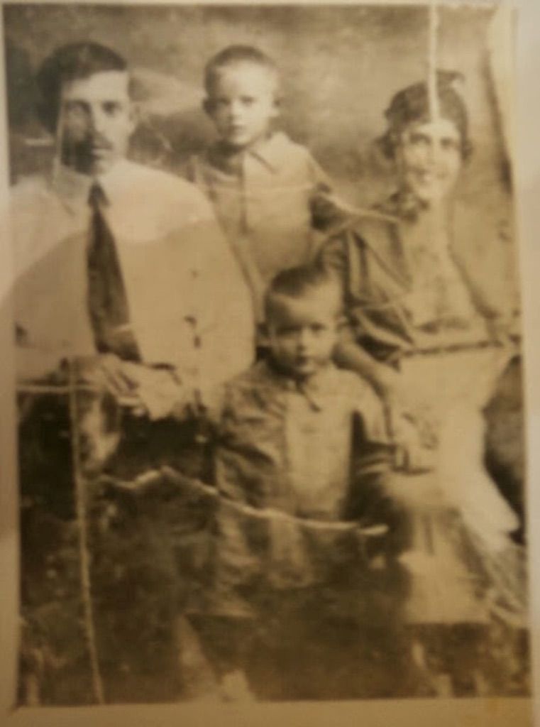 1931, Мазаев Гаврила Васильевич, его жена Лидия Михайловна и дети: Костя и Данил